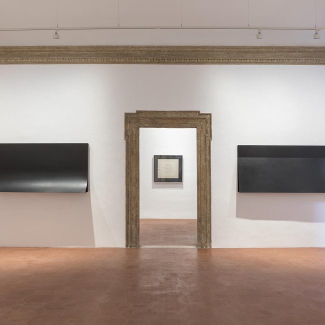 Con queste opere, e altre ancora presentate in mostra, Francesco Lo Savio esce dai limiti restrittivi del rettangolo pittorico, prendendo contatto diretto con l’ambiente e mettendo in evidenza la loro spazialità.